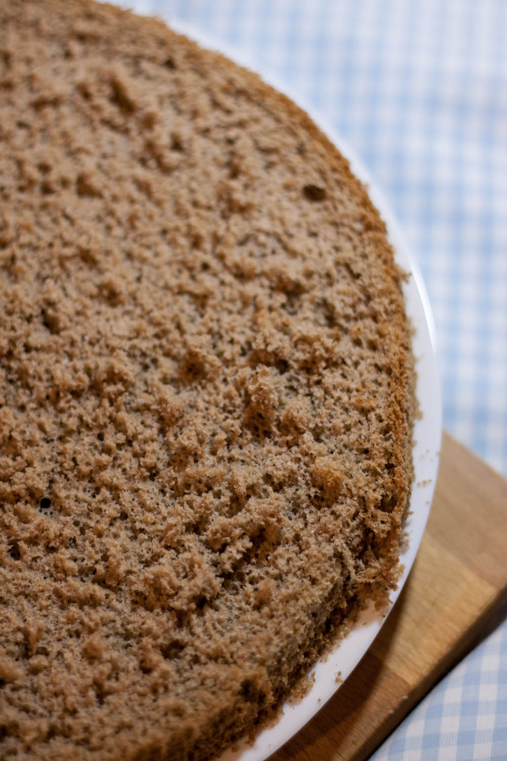 Wcale nie trzeba używać białej mąki pszennej, żeby móc zrobić smaczne ciasto lub zdrowy tort. Chciałam uzyskać tym razem wyższy, puszysty biszkopt pełnoziarnisty, więc zamiast samej mąki razowej dodałam też trochę białej orkiszowej, przez co ciasto zyskało na lekkości. Możecie podzielić biszkopt na dwie lub trzy części i przełożyć jakimś pysznym (i bezcukrowym ;)) kremem, albo posmarować domową konfiturą 🙂