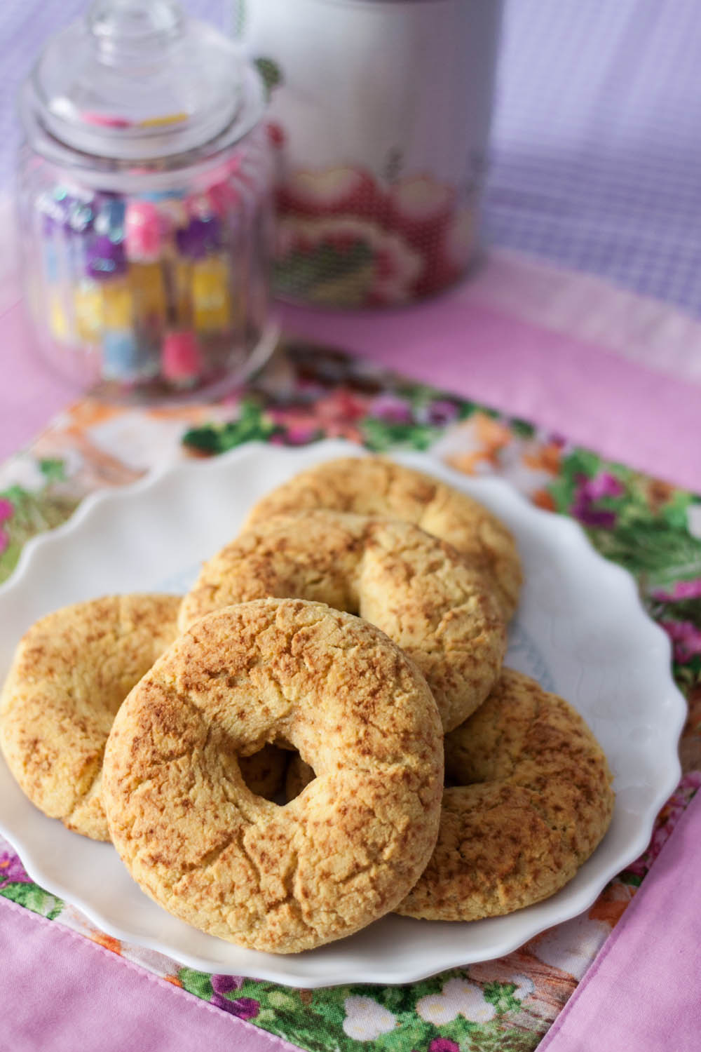 Przepis na te fit bajgle autorstwa Bożki pojawił się niedawno na facebooku Bezbolesne Usuwanie Cukru. Czytałam listę składników i już wiedziałam, że będę musiała ich spróbować. Lubię korzystać z mąki kokosowej, bo można wyczarować z niej wiele różności. Musiałam jedynie wyposażyć się w mąkę kukurydzianą – nie chciałam nic zepsuć, ale pewnie kolejnym razem wypróbuję też inne rodzaje mąk, bo czuję, że mogą wyjść równie pyszne bajgle 🙂 Zachęcam do spróbowania, bo ciasto jest całkiem plastyczne, chociaż trzeba uważać, bo trochę się kruszy podczas formowania pączków. Jak zwykle przepis jest bez dodatku cukru – ja użyłam płaskiej łyżki erytrolu, przez co te fit bajgle mają drobne, zarumienione kropki i sypkiego ekstraktu ze stewii. Możecie też zastąpić moje słodziki ksylitolem. Dla niektórych osób plusem może być też brak jajek i tłuszczu w przepisie 🙂
